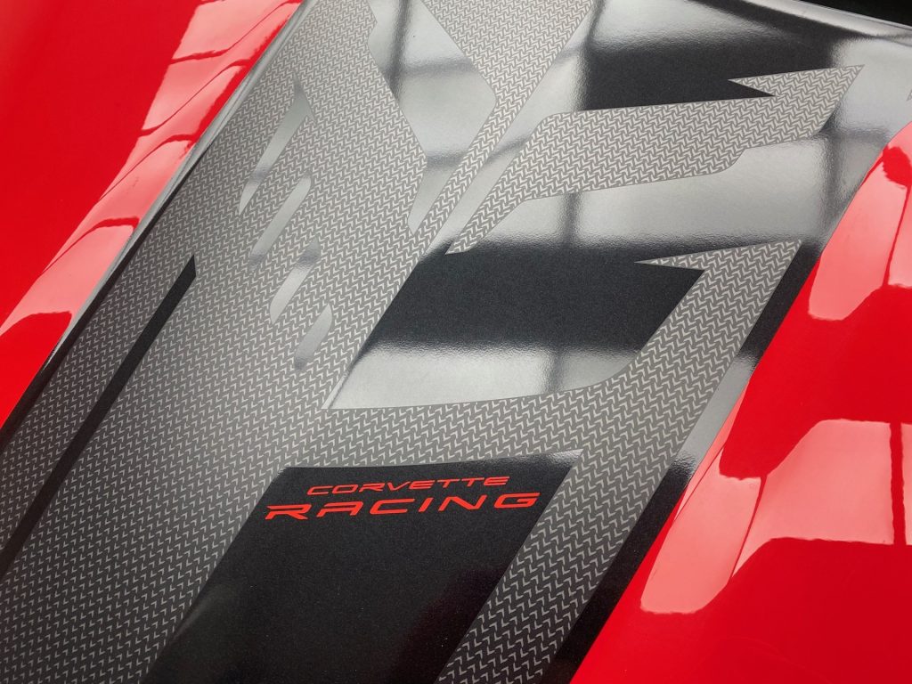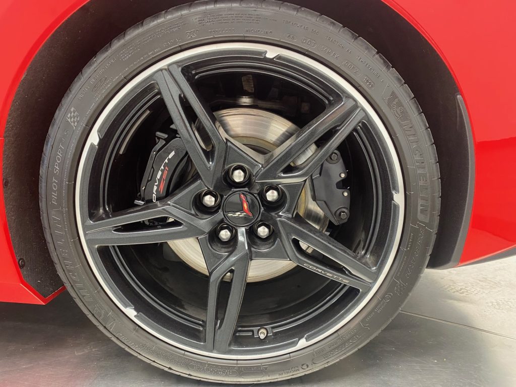 The car also has a Carbon Flash Painted Roof, Carbon Flash w/Machined Finish Wheels, Carbon Flash Painted Mirrors and Stingray R Appearance Package.